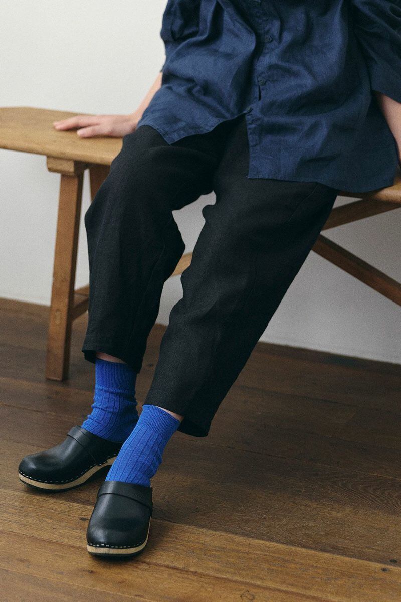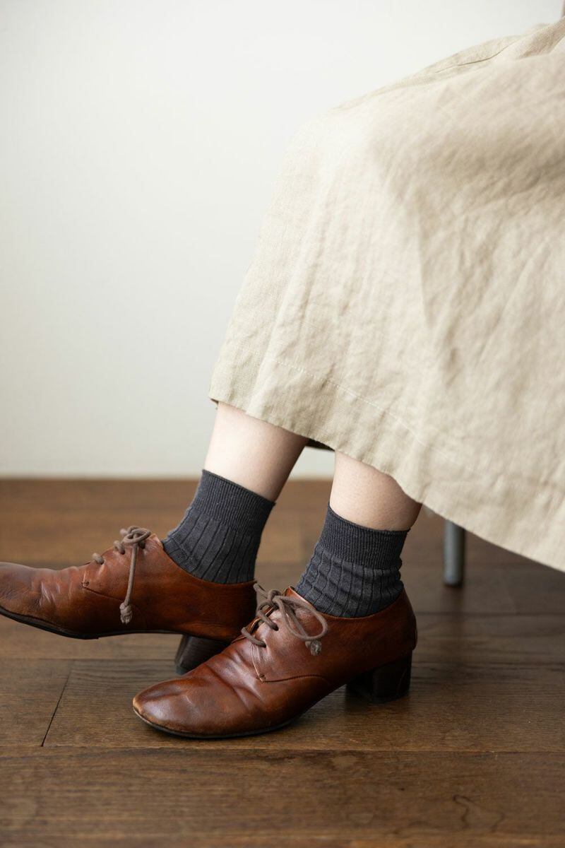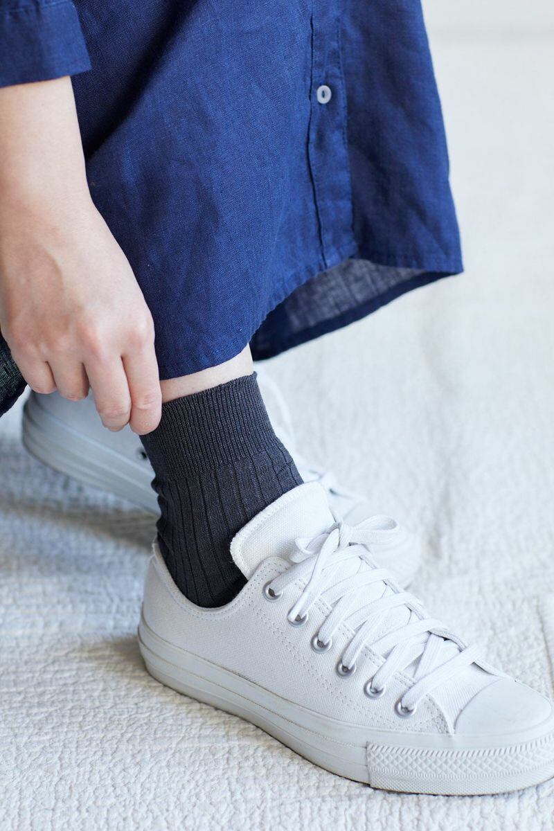 厳選されたフランス産の細番手のリネン糸で編んだリブ地のショートソックスです。
