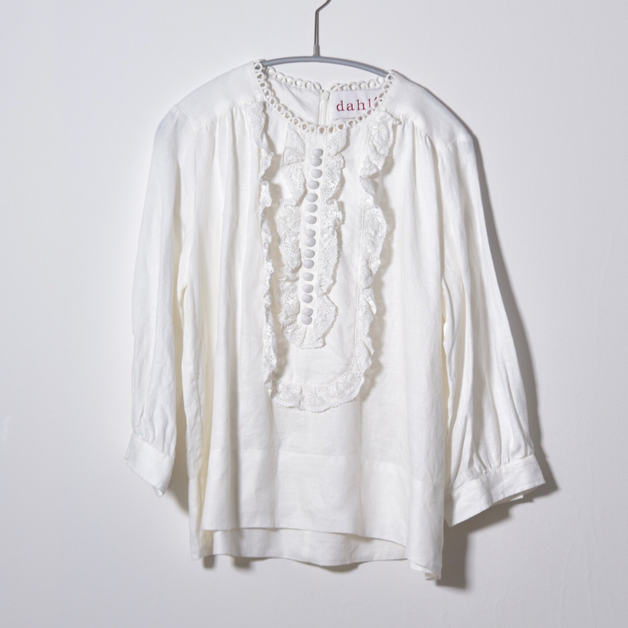 dahl’ia │フロントフリル・リネンブラウス ホワイト | ダリア