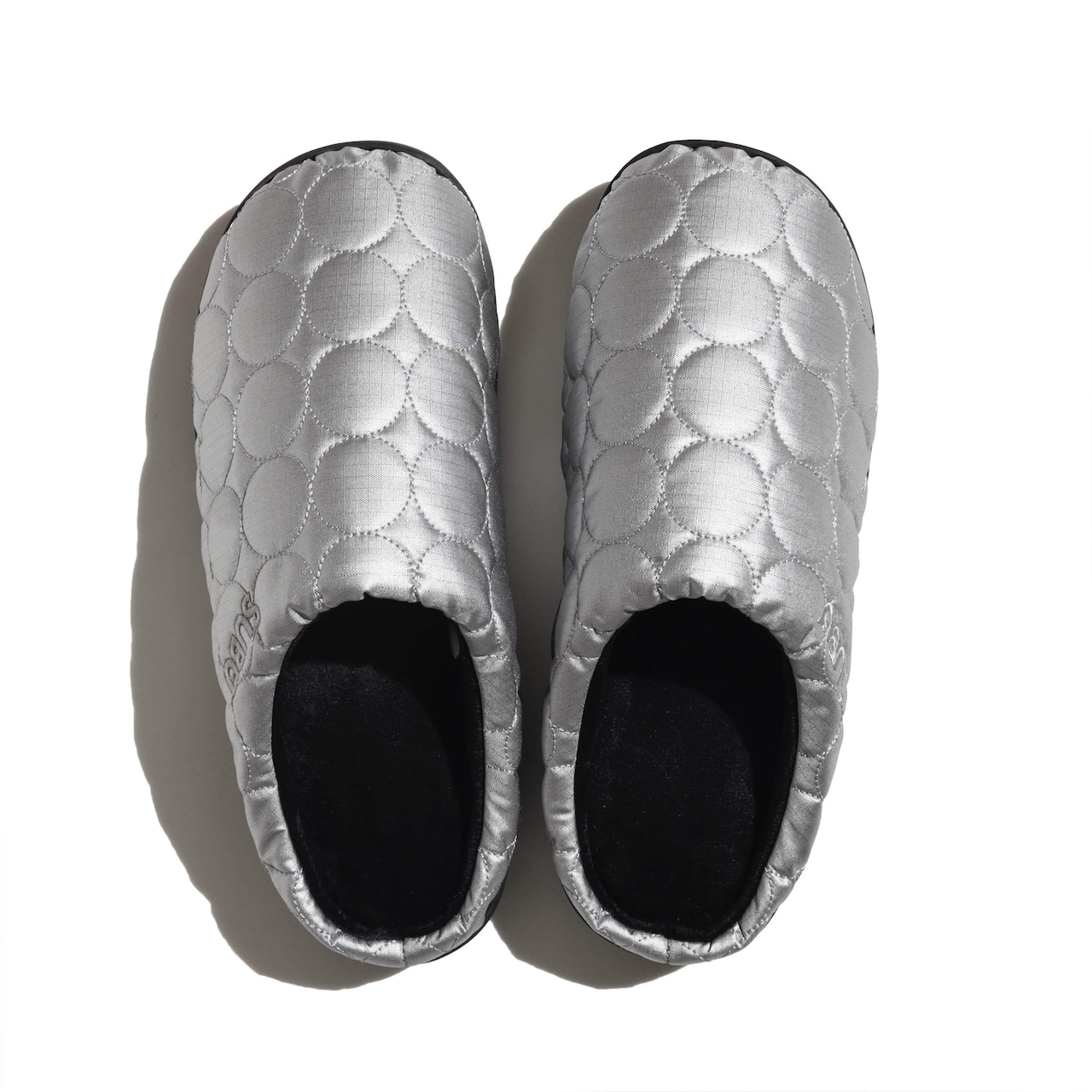 円形キルティングの柔らかな表情に、シルバーの未来的な輝きを加えることで、
