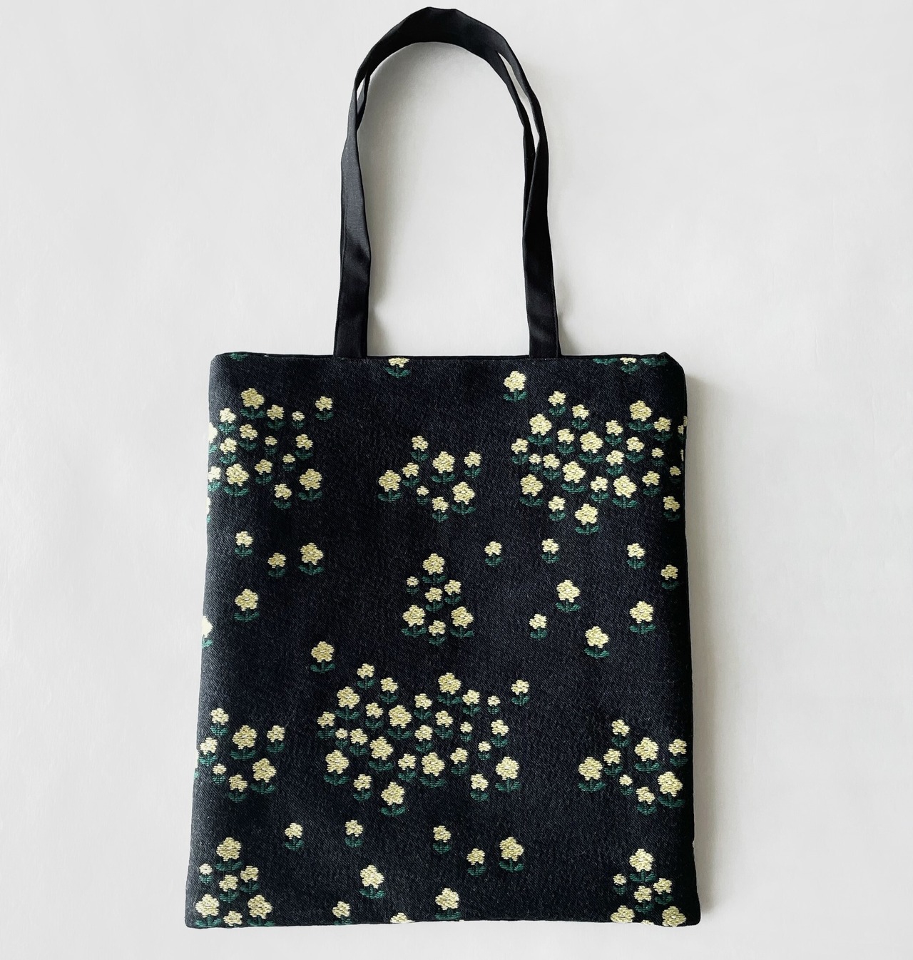 ランダムに咲く小さな野に咲く花をイメージし、一つ一つ、柄の出方も裁断によって異なります。