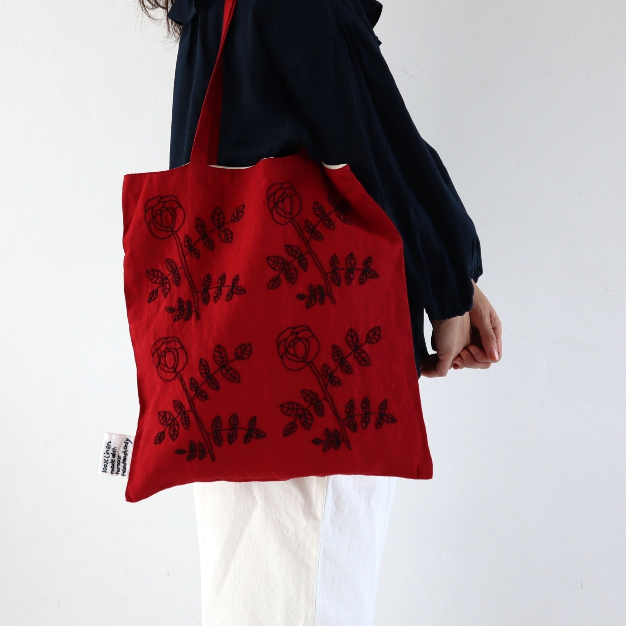 デザイナーみずからが描いたイラストをシンプルな手刺繍で表現したトートバッグ。