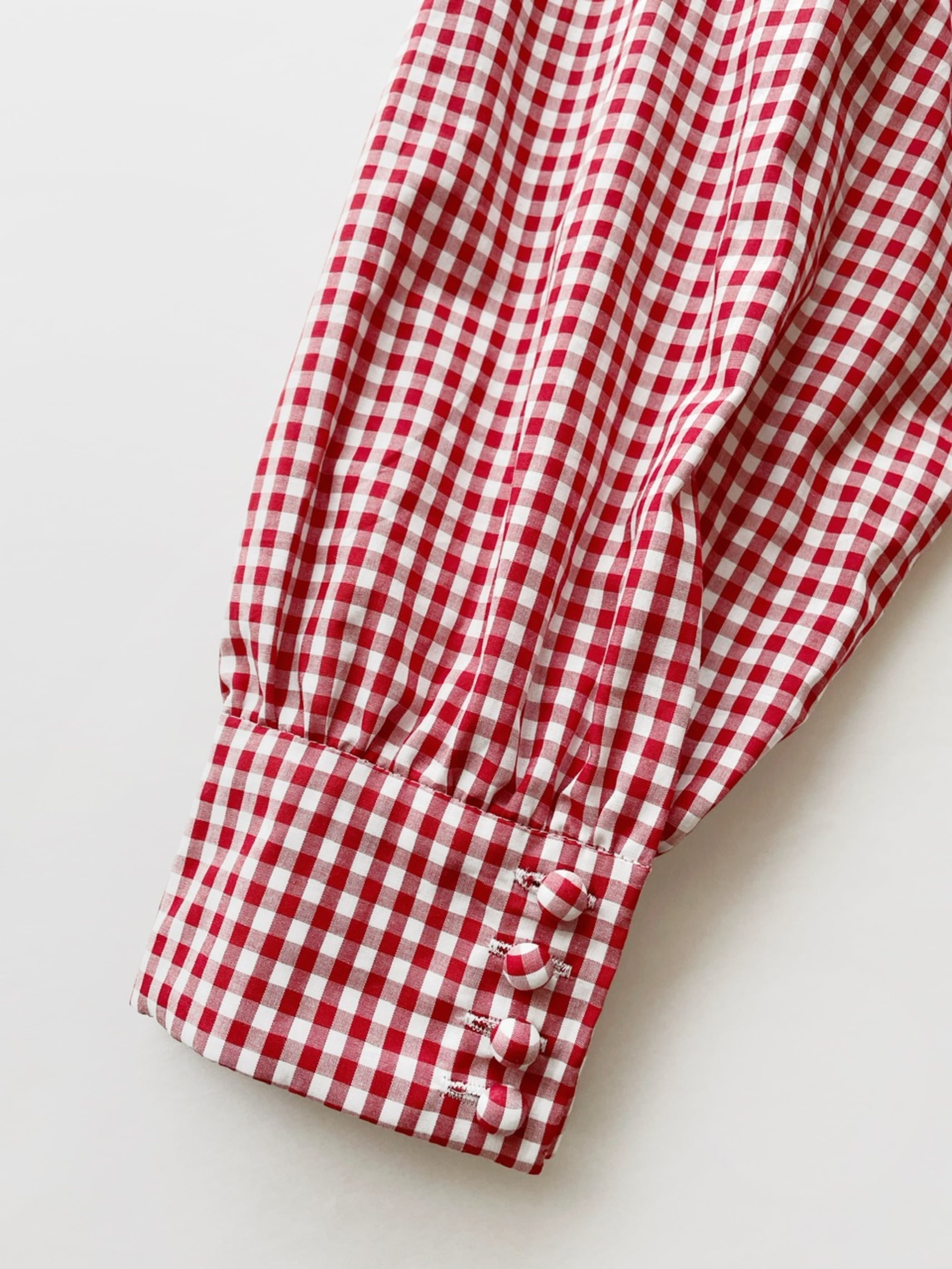 ワンピとして一枚で着ても、重ねて着ても可愛いギンガムチェックのシャツワンピです。