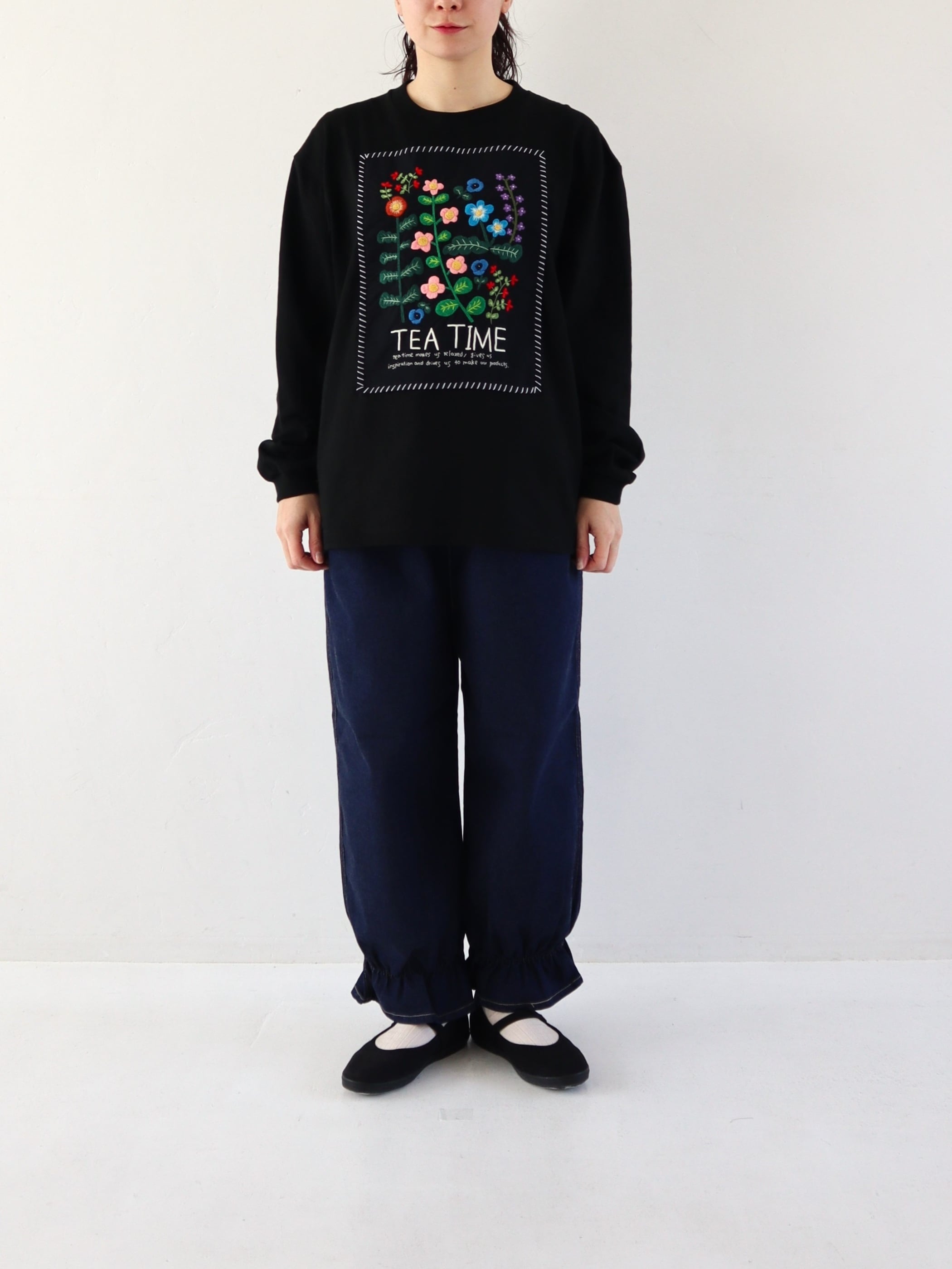 ハンド刺繡をふんだんに散りばめたフロントのデザインが効いた、まさに一張羅Tシャツという名にふさわしい一品です。