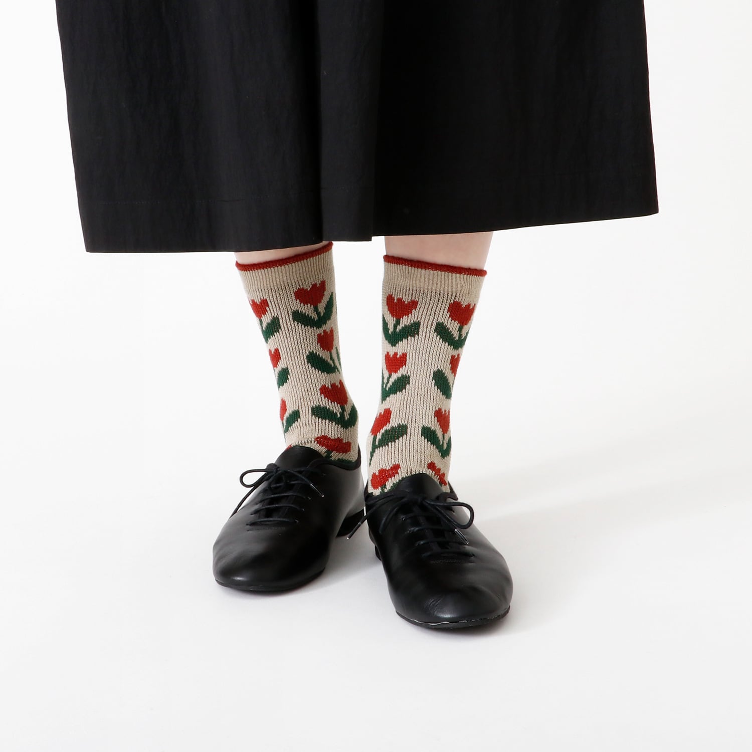 チューリップがらのジャガード編みのソックスです。