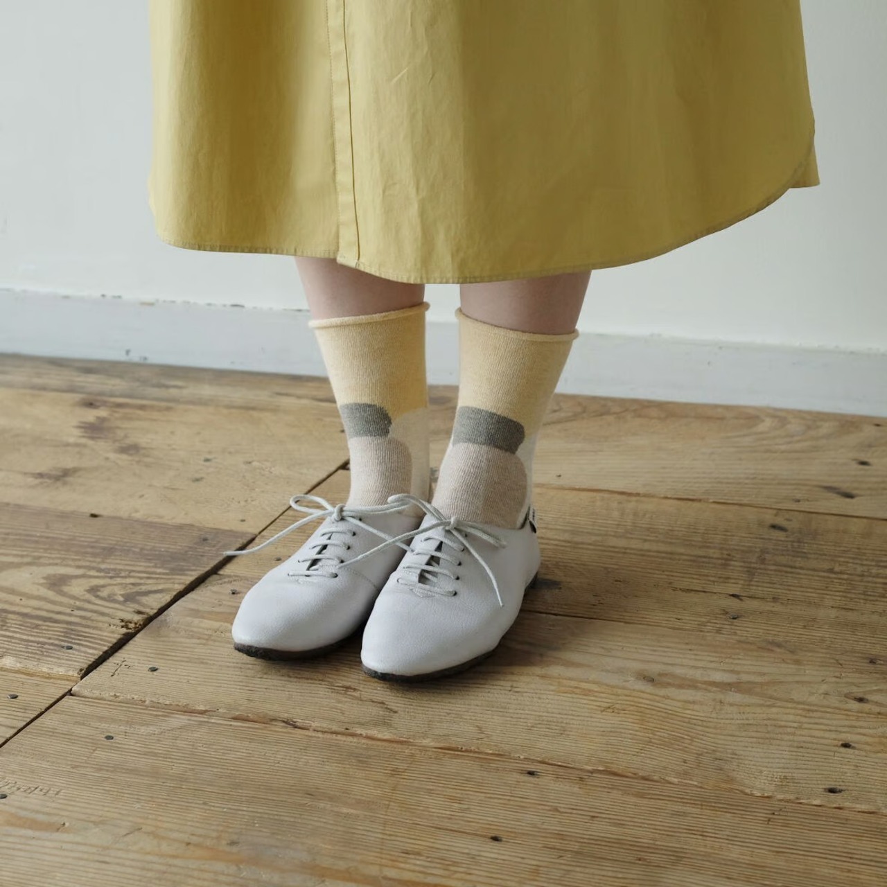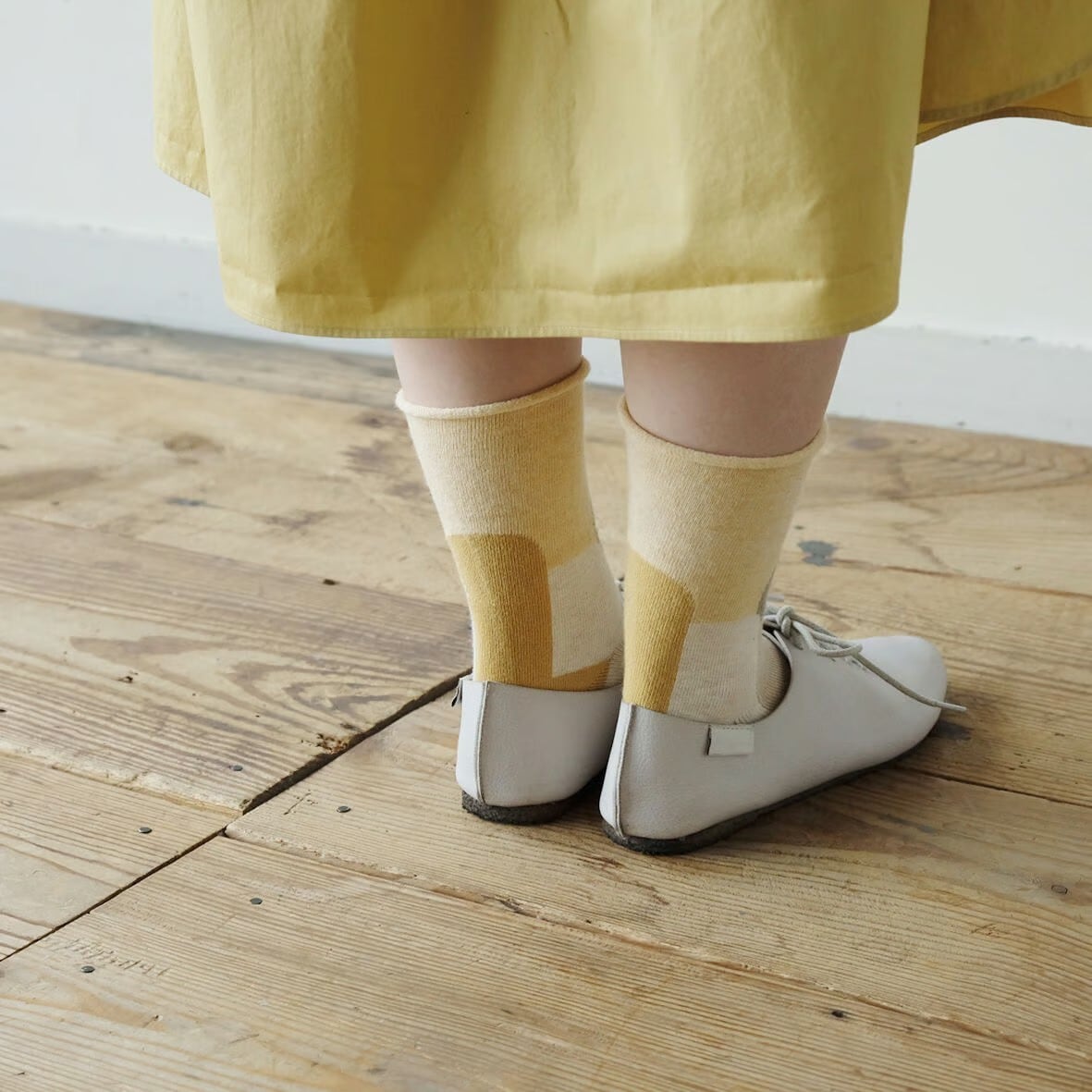 “昔ながらのゆっくり編み”で、素材も手間も時間もたっぷりかけてつくる「ふんわりくつした」は、ゴムが入っていないのでしめつけ感がなく、ふんわりとした履き心地です。