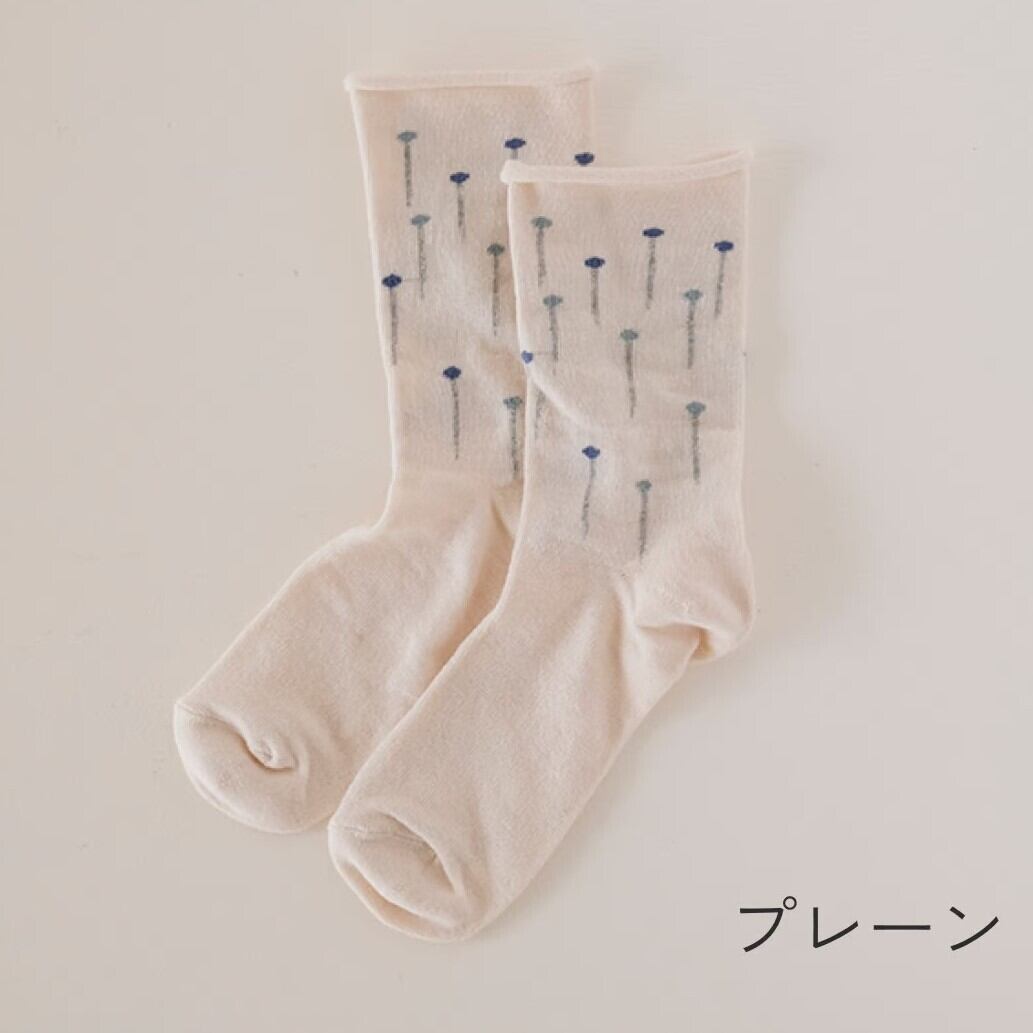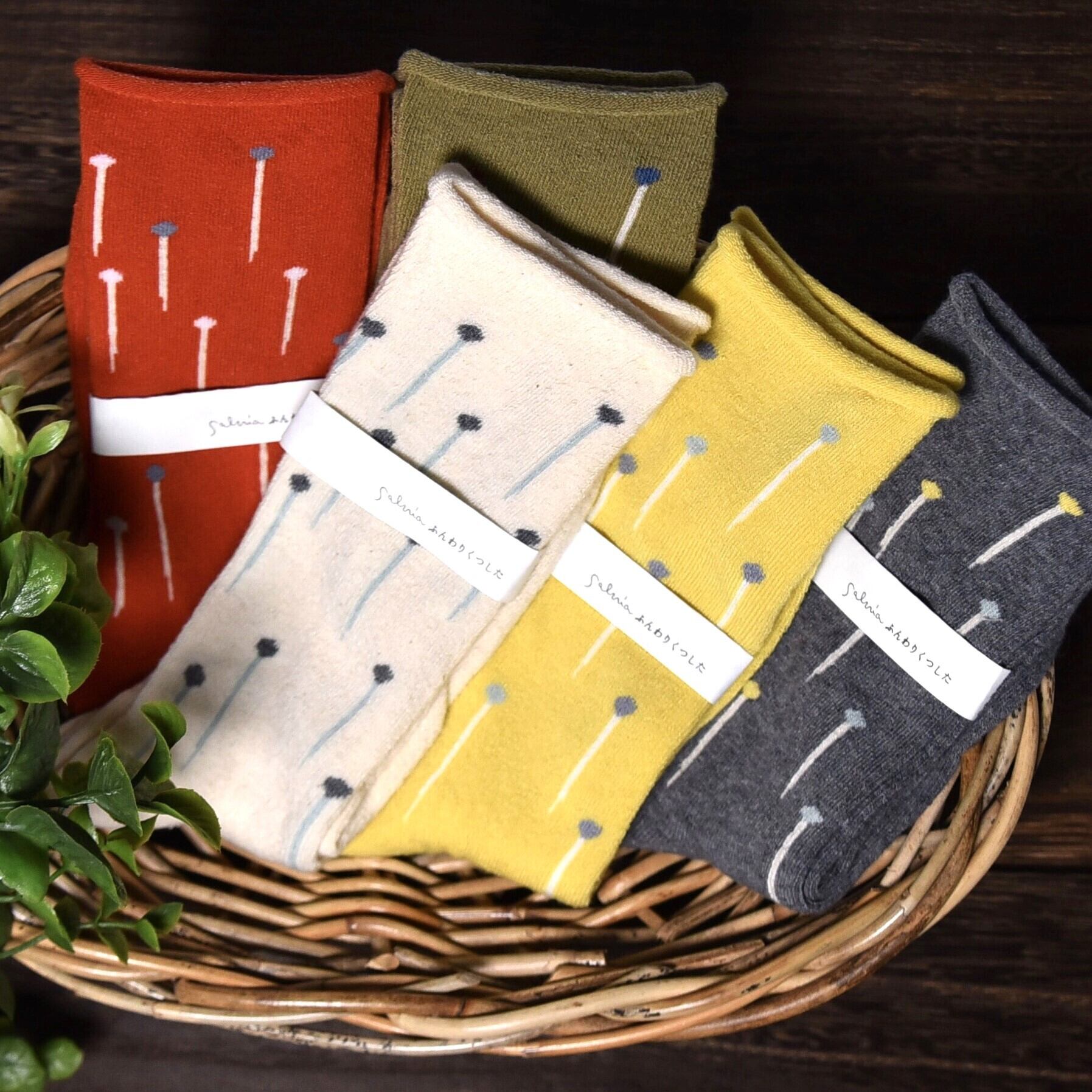 “昔ながらのゆっくり編み”で、素材も手間も時間もたっぷりかけてつくる「ふんわりくつした」は、ゴムが入っていないのでしめつけ感がなく、ふんわりとした履き心地です。