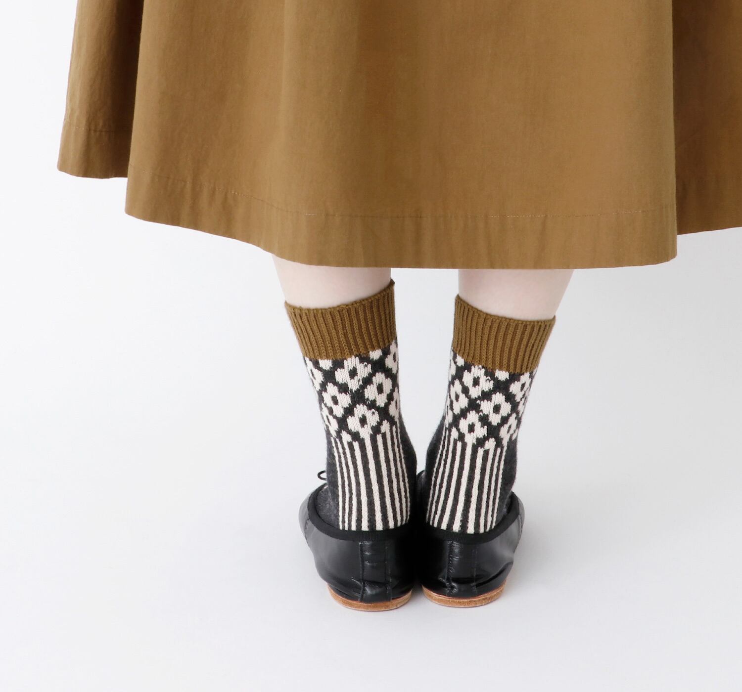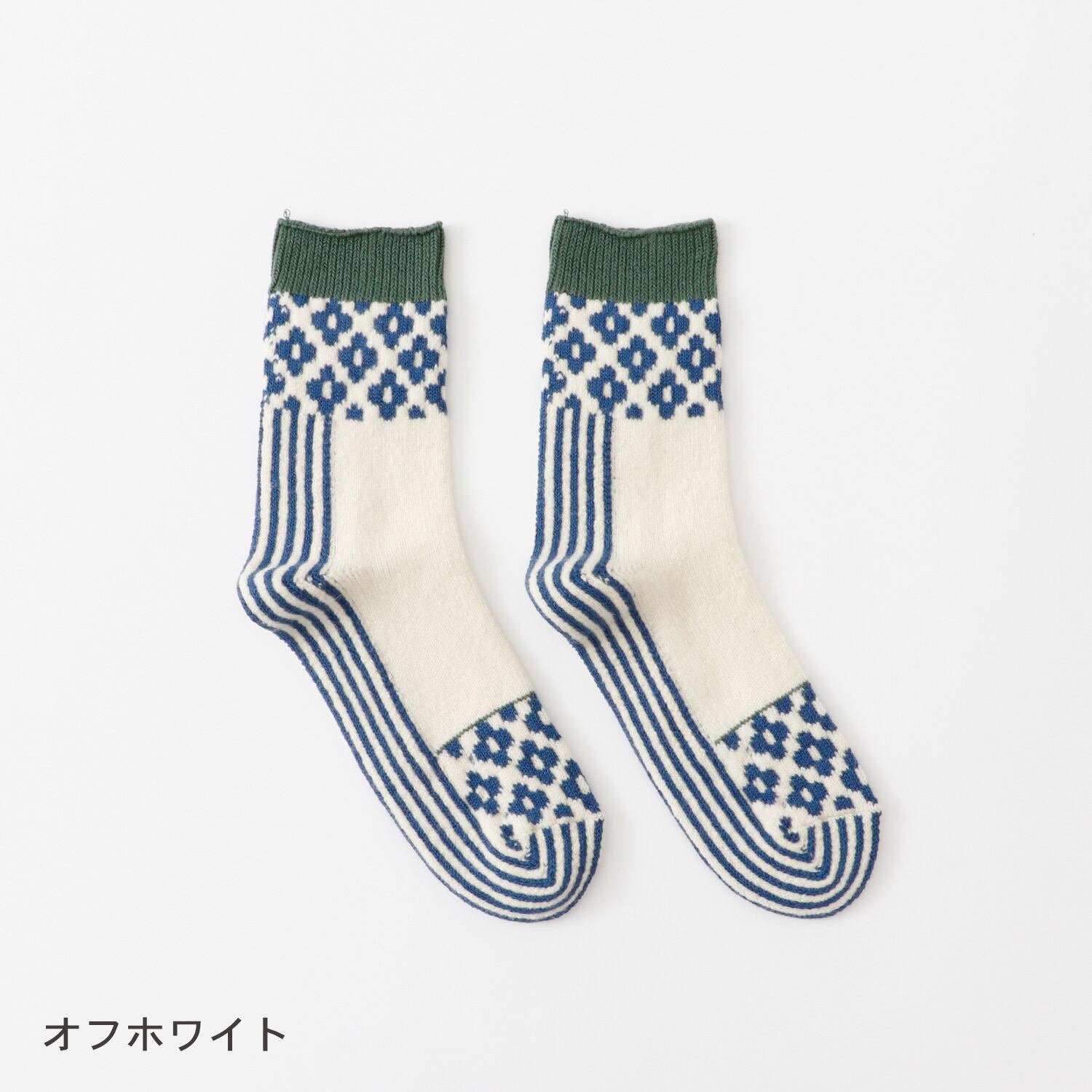 ストライプとお花柄のコンビネーションが北欧テイストで、合わせやすいカラー展開が魅力のソックスです。