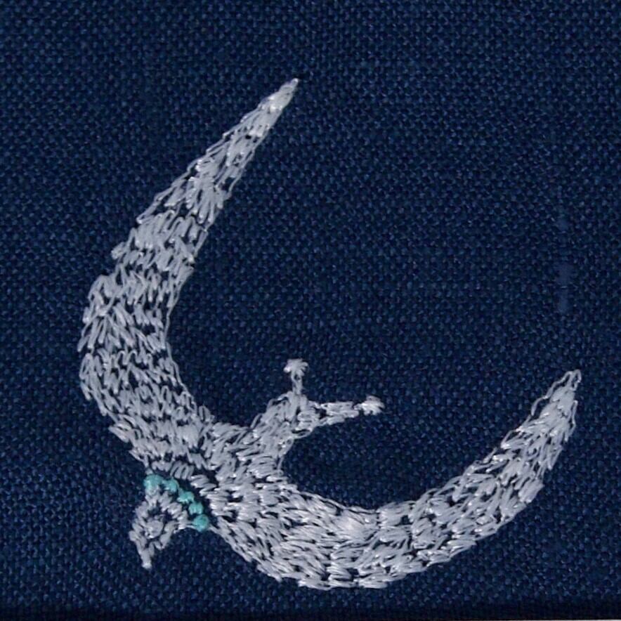 鳥の 刺繍には首元のネックレスのような刺繍があり、色のアクセントになっています。