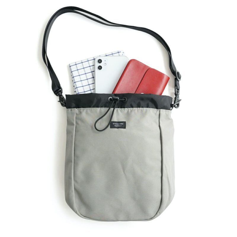 素材やサイズのアレンジを加えたショルダーバッグです。